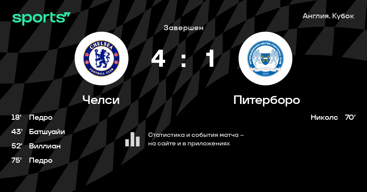 Бегович - Кэйхилл, Терри, Зума - Педро, Лофтус-Чик, Фабрегас, Чалоба, Иванович - Батшуайи, ВиллианЗапасные: Эдуарду, Аспиликуэта, Айна, Мозес, Канте, Диего Коста, Азар