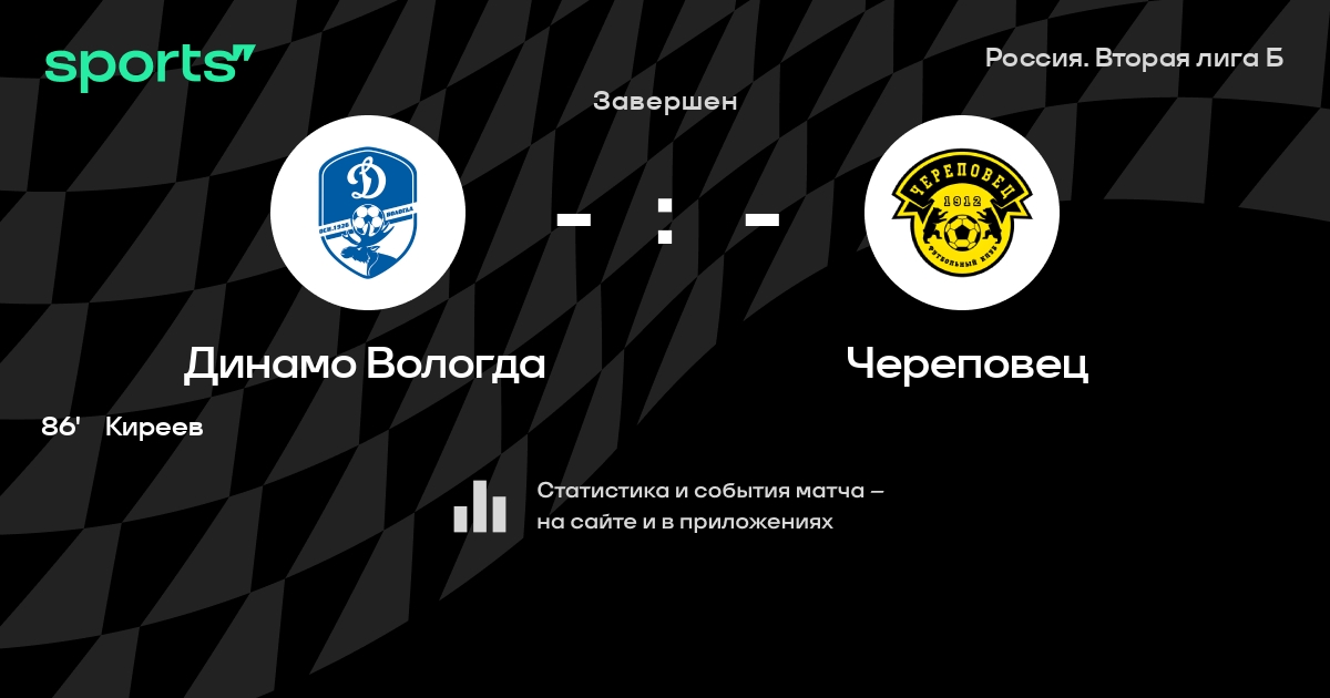 Результат прошлой игры в турнире «Вторая лига»: Спартак-2 – Динамо Вологда 1:0. После 18 туров Динамо Вологда набирает 37 очков и занимает 2 место в турнире. Лучший бомбардир команды – Артем Шаболин: он забил 8 в 18 матчах. В последних 5 играх Динамо Вологда забивает 5 голов. В последних 5 играх Динамо Вологда пропускает 6 голов.