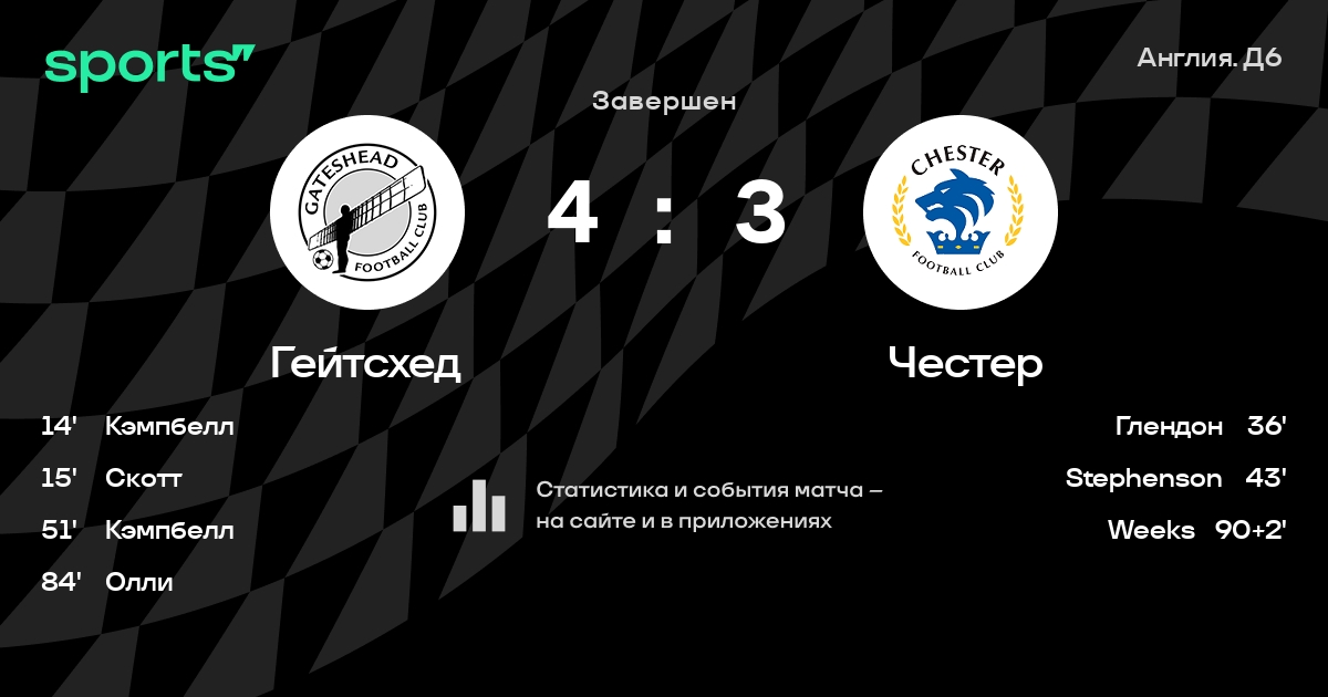 Гейтсхед – Честер: Честер забивает в 5 из 7 последних матчей против этого соперника