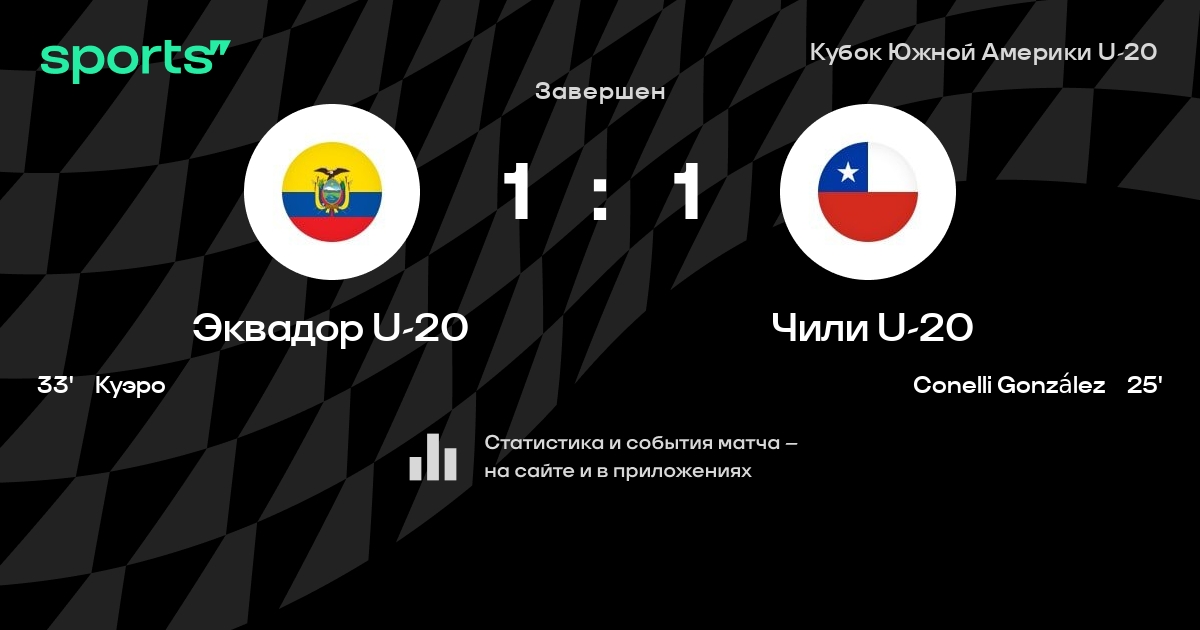 Эквадор U-20 – Чили U-20: Эквадор U-20 забивает в 3 последних матчах против этого соперника