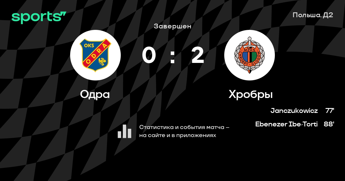 Результат прошлой игры в турнире «Первая лига»: Полония Варшава – Одра 1:0. После 17 туров Одра набирает 22 очков и занимает 13 место в турнире. Лучший бомбардир команды – Адриан Пужицки: он забил 3 в 12 матчах. Одра пропускает в 4 последних матчах в турнире «Первая лига». В последних 5 играх Одра забивает 5 голов. В последних 5 играх Одра пропускает 8 голов.