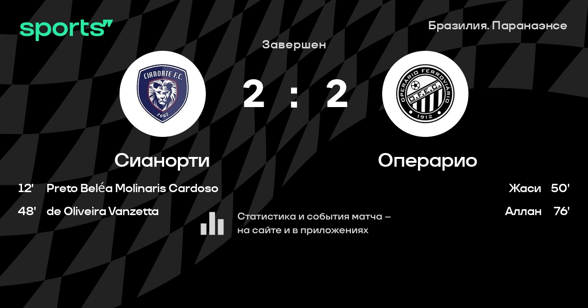 Результат прошлой игры в турнире «Лига Паранаэнсе»: Сианорти – Куритиба 4:1. После 7 туров Сианорти набирает 13 очков и занимает 2 место в турнире. Лучший бомбардир команды – Mikael: он забил 3 в 16 матчах. Операрио имеет в активе больше всех побед в турнире – 4. Сианорти пропускает в 5 последних матчах в турнире «Лига Паранаэнсе». Сианорти больше всех забивает в турнире – 14 в 7. В последних 5 играх Сианорти забивает 11 голов. В последних 5 играх Сианорти пропускает 7 голов.