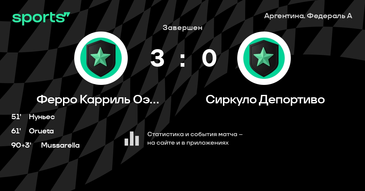 Результат прошлой игры в турнире «Торнео Федераль A»: Чиполлетти – Ферро Карриль Оэсте ЛП 0:0. После 18 туров Ферро Карриль Оэсте ЛП набирает 13 очков и занимает 10 место в турнире. Лучший бомбардир команды – Игнасио Гонсалес: он забил 4 в 21 матчах. В последних 5 играх Ферро Карриль Оэсте ЛП забивает 4 голов. В последних 5 играх Ферро Карриль Оэсте ЛП пропускает 4 голов.