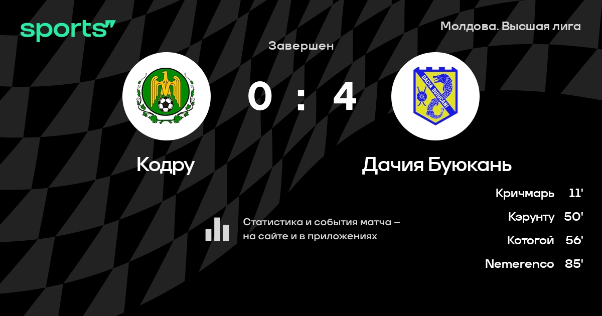 Кодру – Дачия Буюкань: Дачия Буюкань забивает в 6 последних матчах против этого соперника