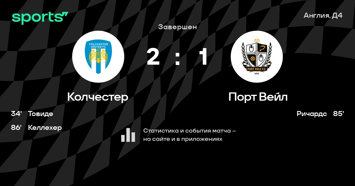 Колчестер – Порт Вейл: Порт Вейл не проигрывает в 6 из 8 последних матчей против этого соперника