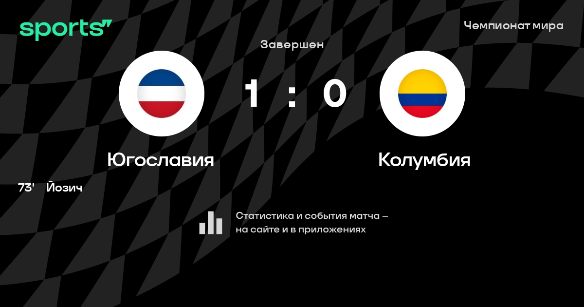 Трансляция Югославия - Колумбия