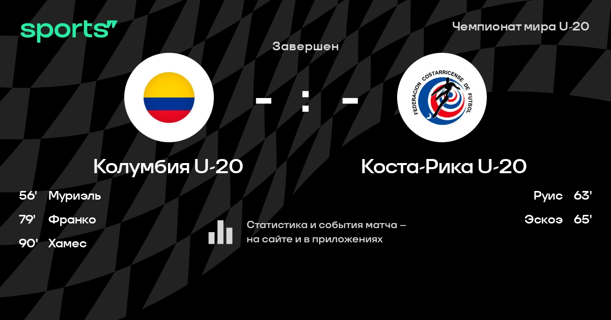 Трансляция Колумбия U-20 - Коста-Рика U-20