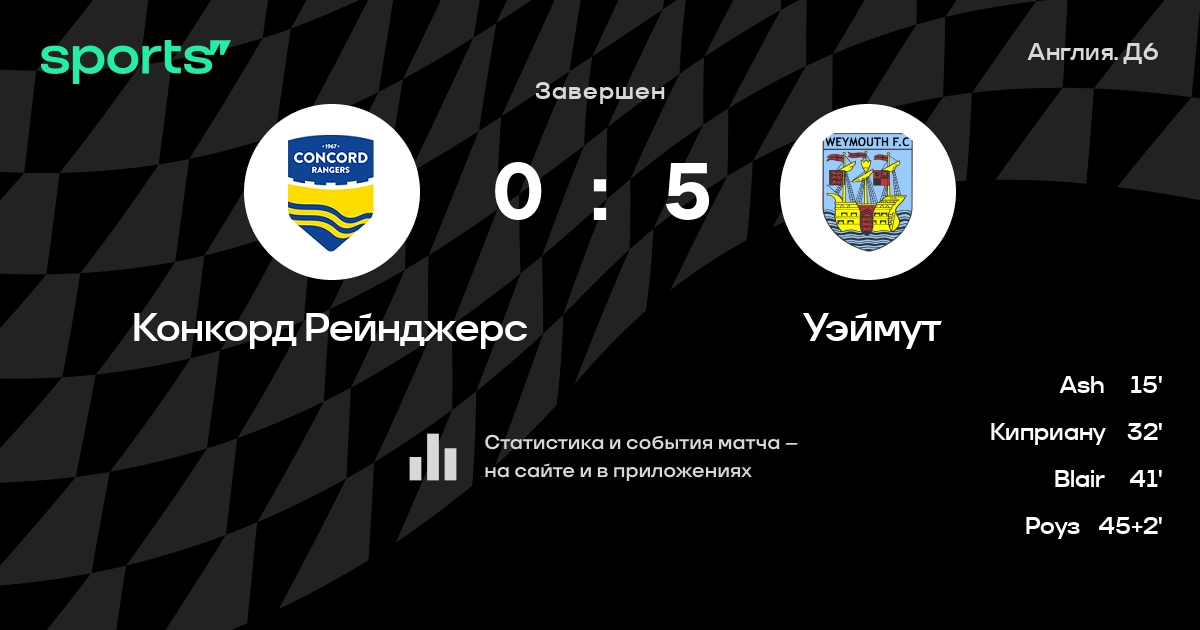Конкорд Рейнджерс – Уэймут: Уэймут забивает в 3 последних матчах против этого соперника