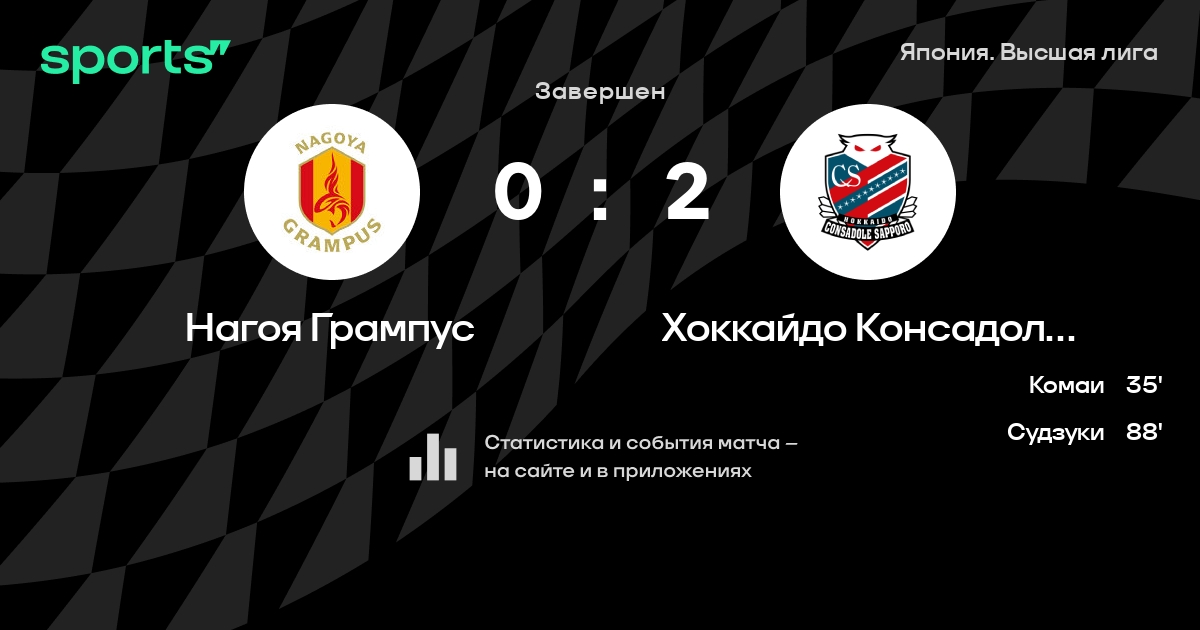 Результат прошлой игры в турнире «Джей-лига 1»: Ависпа Фукуока – Нагоя Грампус 1:0. После 33 туров Нагоя Грампус набирает 46 очков и занимает 9 место в турнире. Лучший бомбардир команды – Патрик Агияр: он забил 8 в 34 матчах. В последних 5 играх Нагоя Грампус забивает 8 голов. В последних 5 играх Нагоя Грампус пропускает 4 голов.