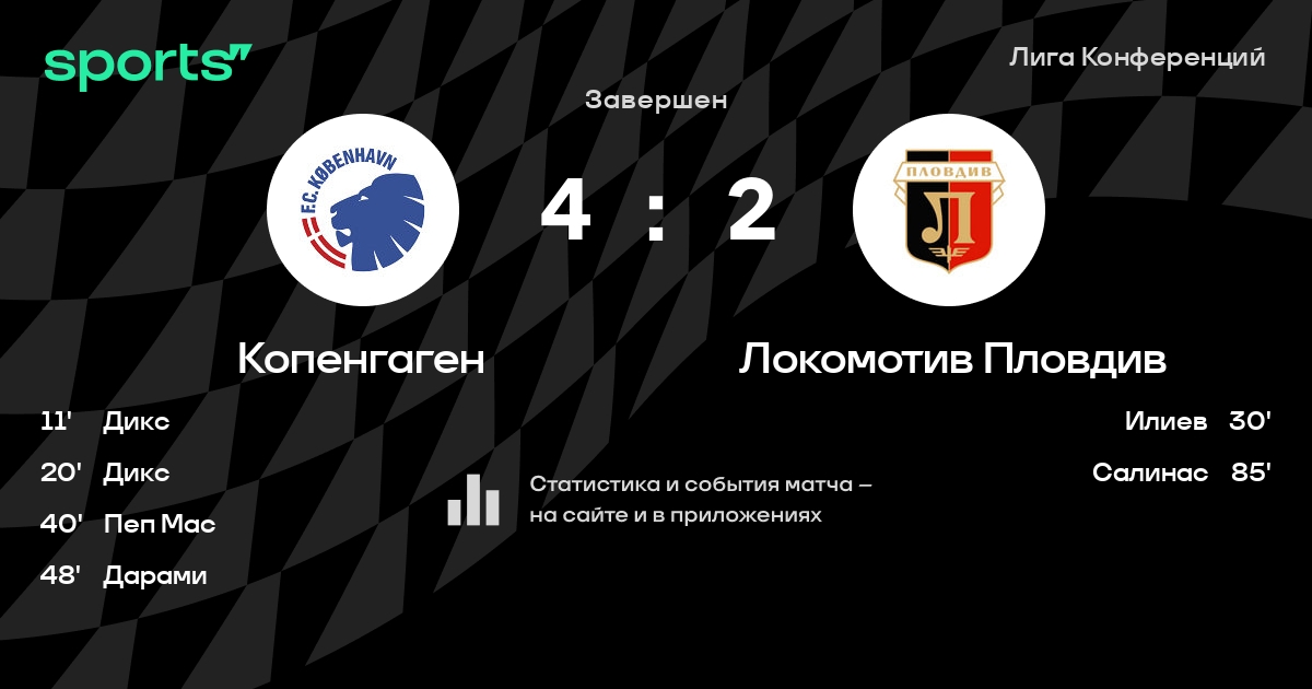 Результат прошлой игры в турнире «Лига Конференций»: Локомотив Пловдив – Копенгаген 1:1. Копенгаген не проигрывает в 3 последних матчах в рамках турнира «Лига Конференций». В 3 последних матчах в турнире «Лига Конференций» Копенгаген обязательно забивает. В последних 5 играх Копенгаген забивает 12 голов. В последних 5 играх Копенгаген пропускает 3 голов.