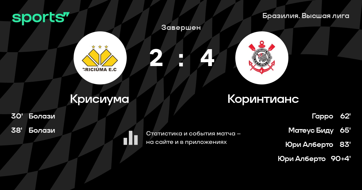 Уго Соуза - Матеус Биду, Густаво Энрике, Рамальо, Матеузиньо - Бидон, Раниэле, Каррильо, Гарро - Юри Алберто, ДепайЗапасные: Донелли, Фагнер, Кака, Уго, Шарлес, Мартинес, Коронадо, Алекс Сантана, Ромеро, Педро Энрике, Педро Раул, Таллес Магно