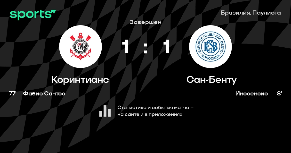 Коринтианс – Сан-Бенту: Коринтианс не проигрывает в 5 из 6 последних матчей против этого соперника.