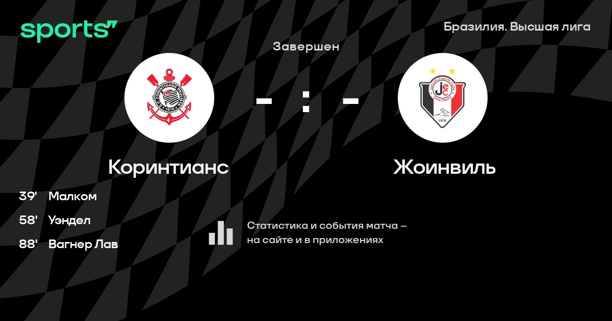 Кассио - Уэндел, Жил, Фелипе, Фагнер - Элиас, Ральф, Рилдо, Ренато Аугусто, Жадсон - Вагнер ЛавЗапасные: Валтер, Эдилсон, Яго, Эду Драсена, Марсиэл, Матеус Перейра, Барони, Родригиньо, Клаудиньо, Ромеро, Малком