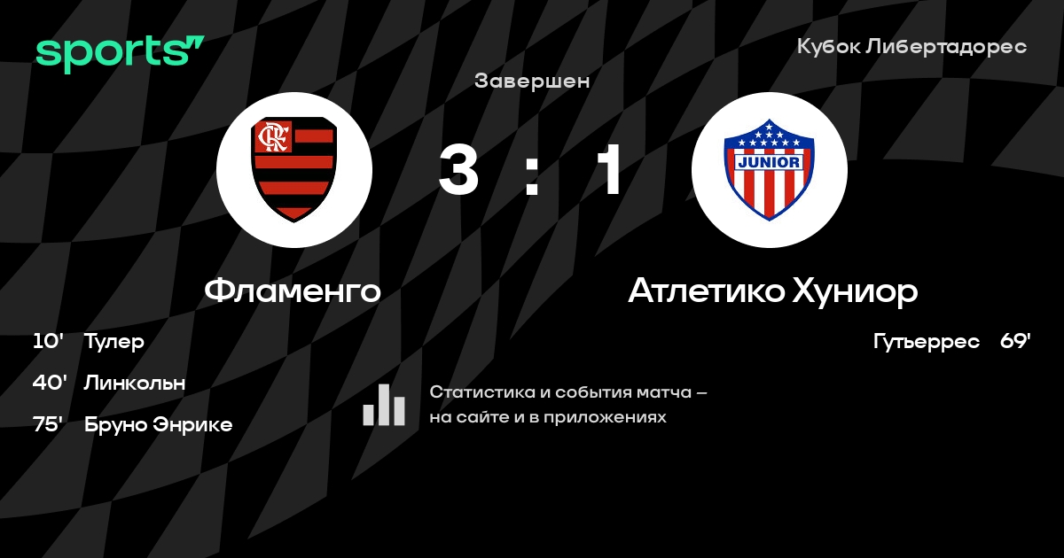 Сезар - Рене, Лео Перейра, Тулер, Матеузиньо - Арао, Витиньо, Диего, Бруно Энрике, Майкл Ричард - ЛинкольнЗапасные: Габриэл Соуза, Уго Соуза, Натан, Исла, Рамон, Габриэл Нога, Гомес, Жерсон, Эвертон Рибейро, Педро, Лазаро