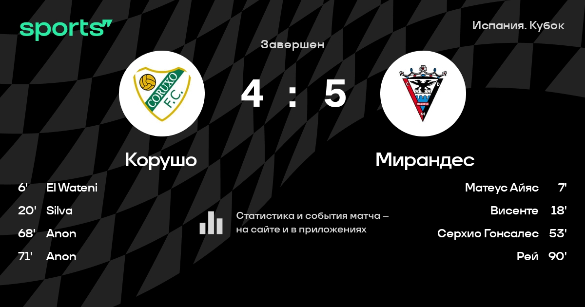 Жоау Кошта - Кихера, Гбеньон, Серхио Гонсалес, Тассано - Пенья, Моэдано, Рей, Висенте, Матеус Айяс - Марио БаркоЗапасные: Лимонес, Энрик Франкеса, Серрахерия, Мальса, Меркеланс, Охеменг, Маркос Андре