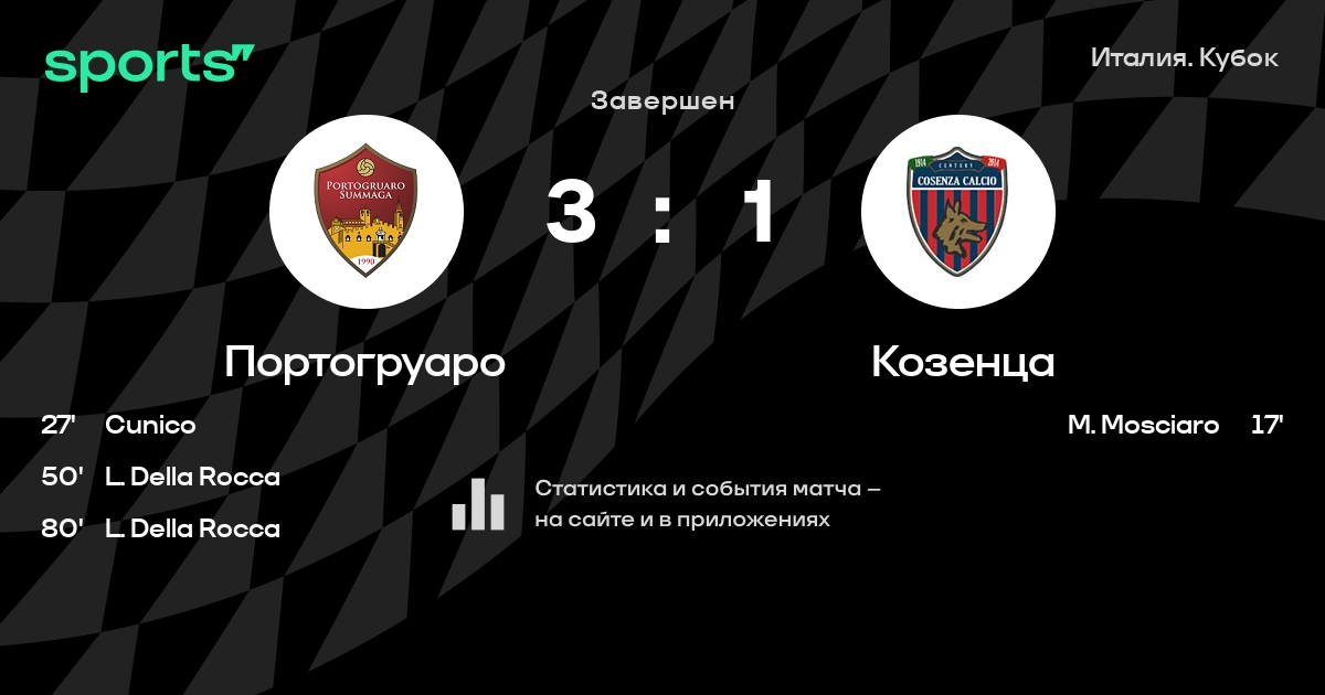 Портосуммага – Козенца: коэффициенты