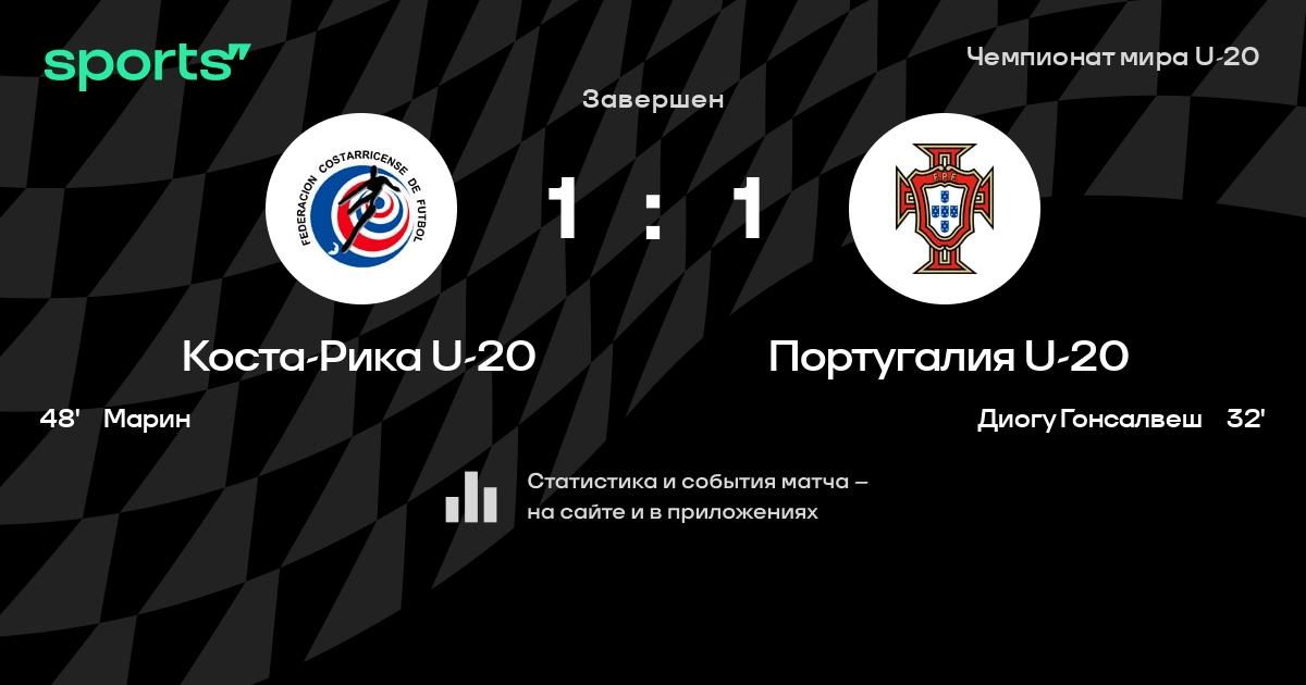 Трансляция Коста-Рика U-20 - Португалия U-20