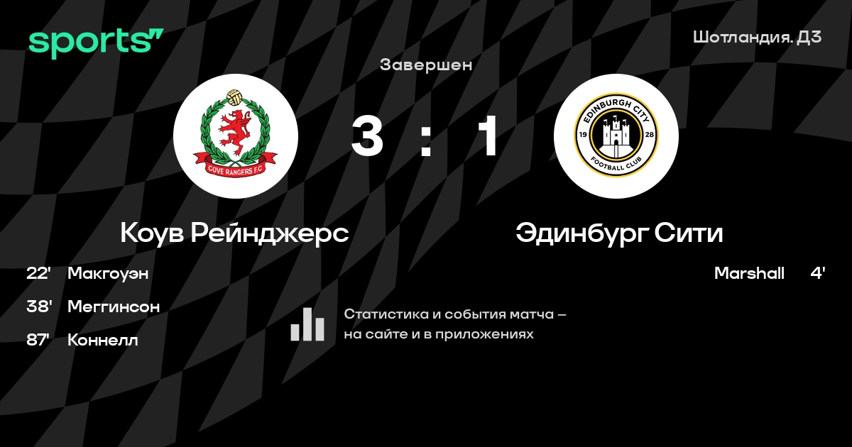 Коув Рейнджерс – Эдинбург Сити: Коув Рейнджерс забивает в 6 последних матчах против этого соперника