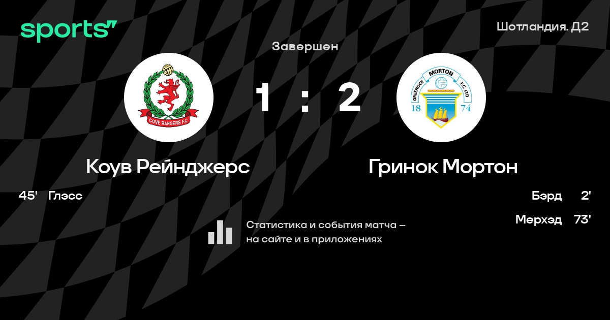 Коув Рейнджерс – Гринок Мортон: Гринок Мортон побеждает в 4 последних очных матчах
