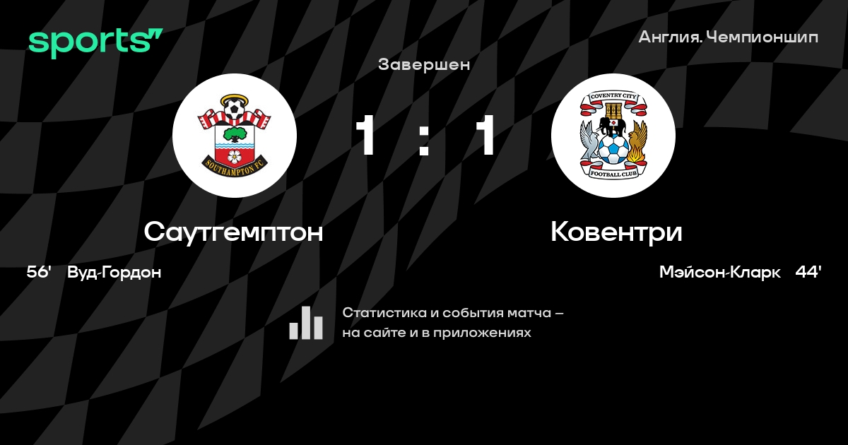 Результат прошлой игры в турнире «Чемпионшип»: Норвич – Саутгемптон 2:1. После 21 туров Саутгемптон набирает 30 очков и занимает 10 место в турнире. Лучший бомбардир команды – Адам Армстронг: он забил 11 в 23 матчах. Ковентри имеет в активе больше всех побед в турнире – 14. В 8 последних матчах в турнире «Чемпионшип» Саутгемптон обязательно забивает. Саутгемптон пропускает в 4 последних матчах в турнире «Чемпионшип». В последних 5 играх Саутгемптон забивает 12 голов. В последних 5 играх Саутгемптон пропускает 8 голов.