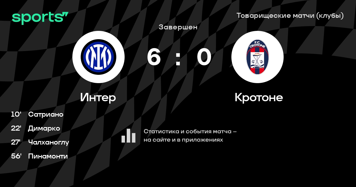 Ханданович - Коларов, де Врей, Шкриньяр - Димарко, Чалханоглу, Брозович, Наингголан, Дармиан - Пинамонти, СатрианоЗапасные: Кордац, Раду, Карбони, Моретти, Раноккия, Соттини, Дзанотти, Агуме, Нунциатини, Сенси, Видаль, Лукаку, Сальседо