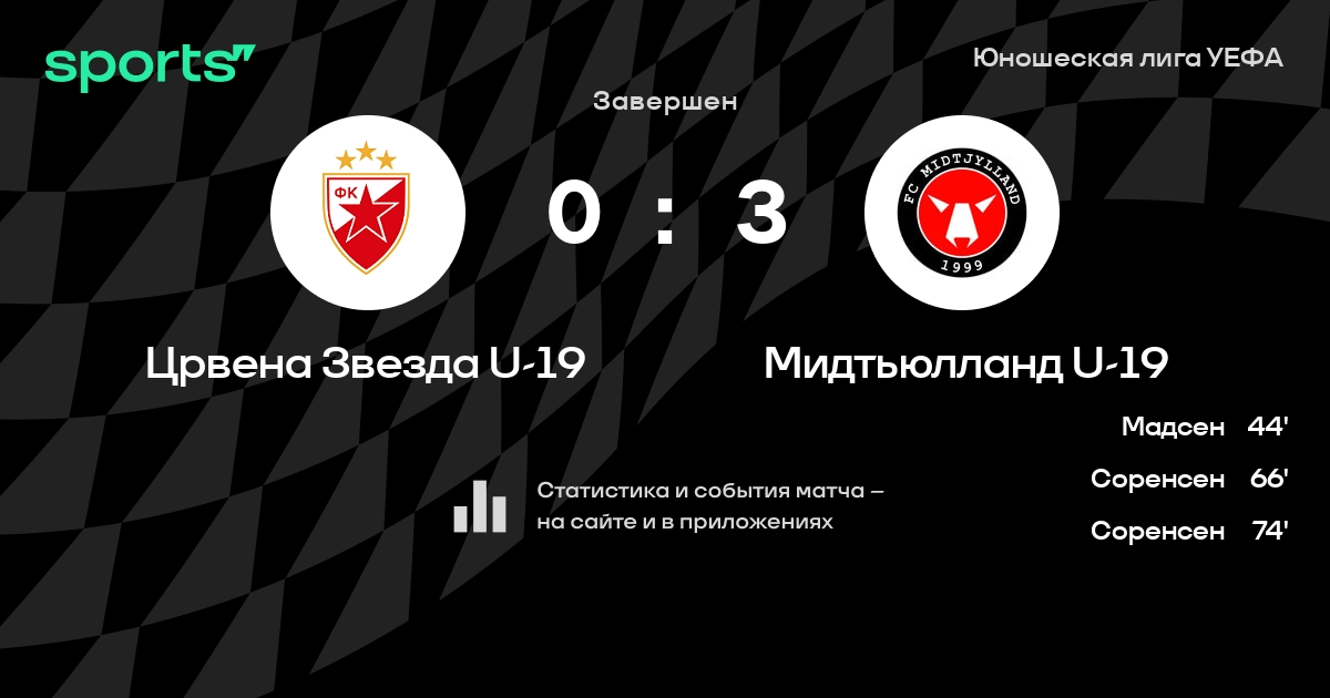 Црвена Звезда U-19 - Мидтьюлланд U-19: положение в турнире