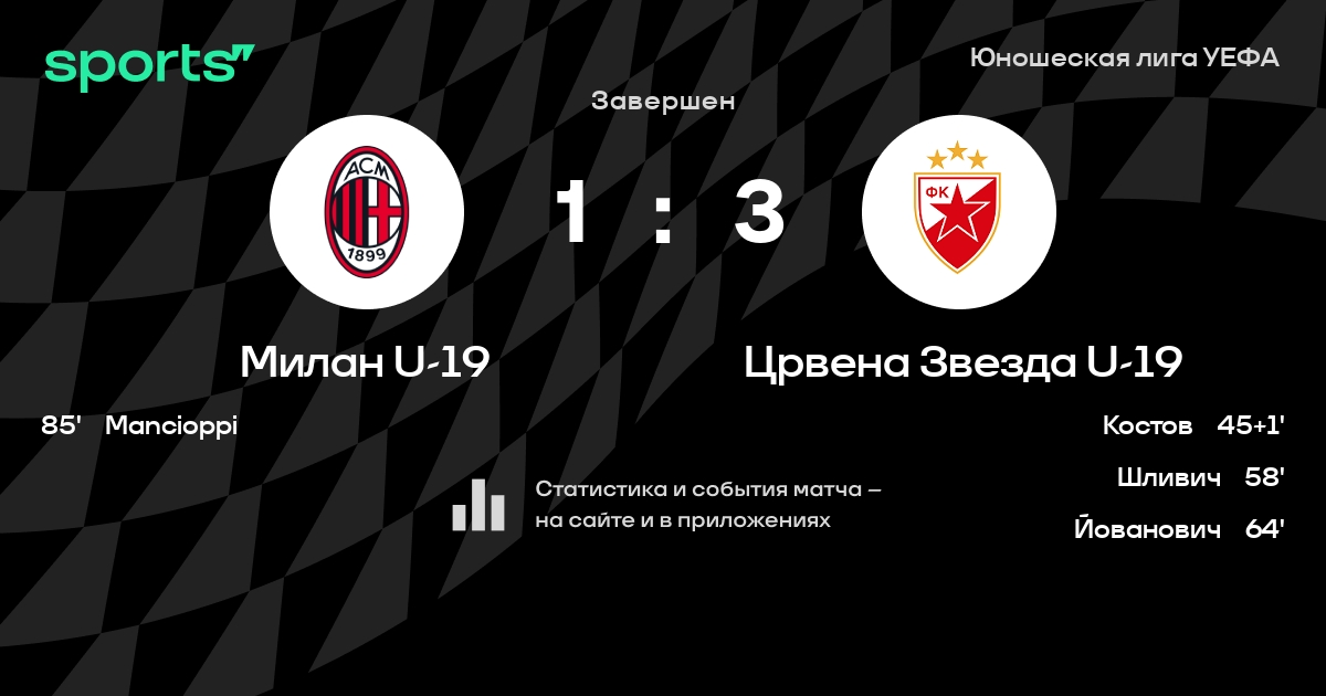 Трансляция Милан U-19 - Црвена Звезда U-19