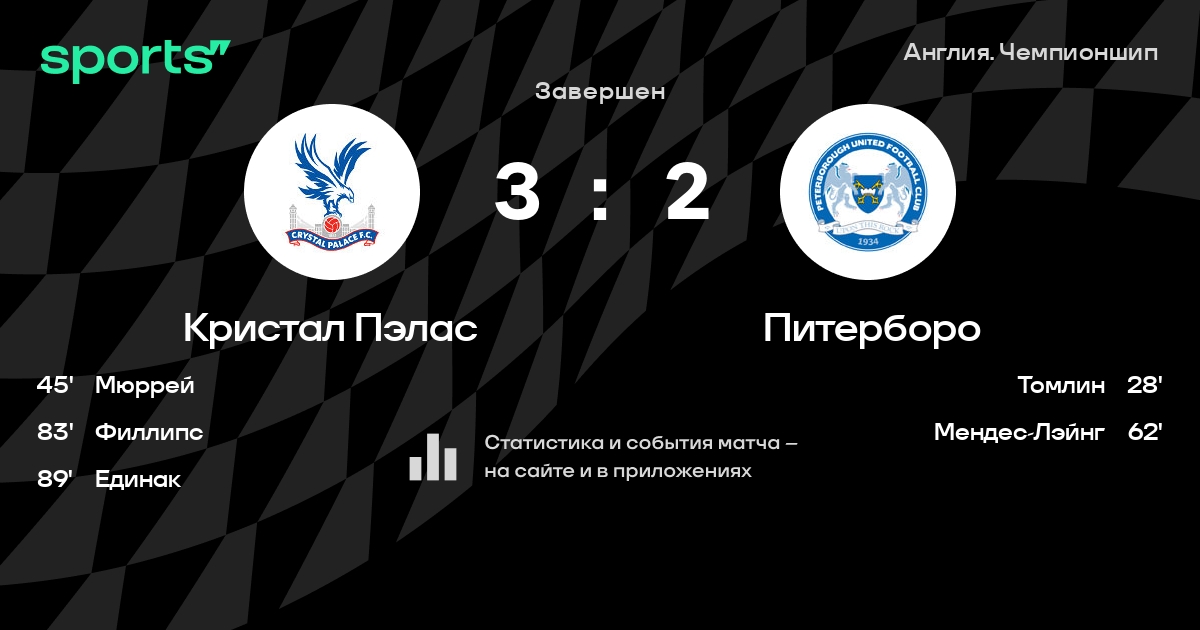 Кристал Пэлас – Питерборо: коэффициенты