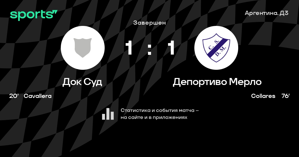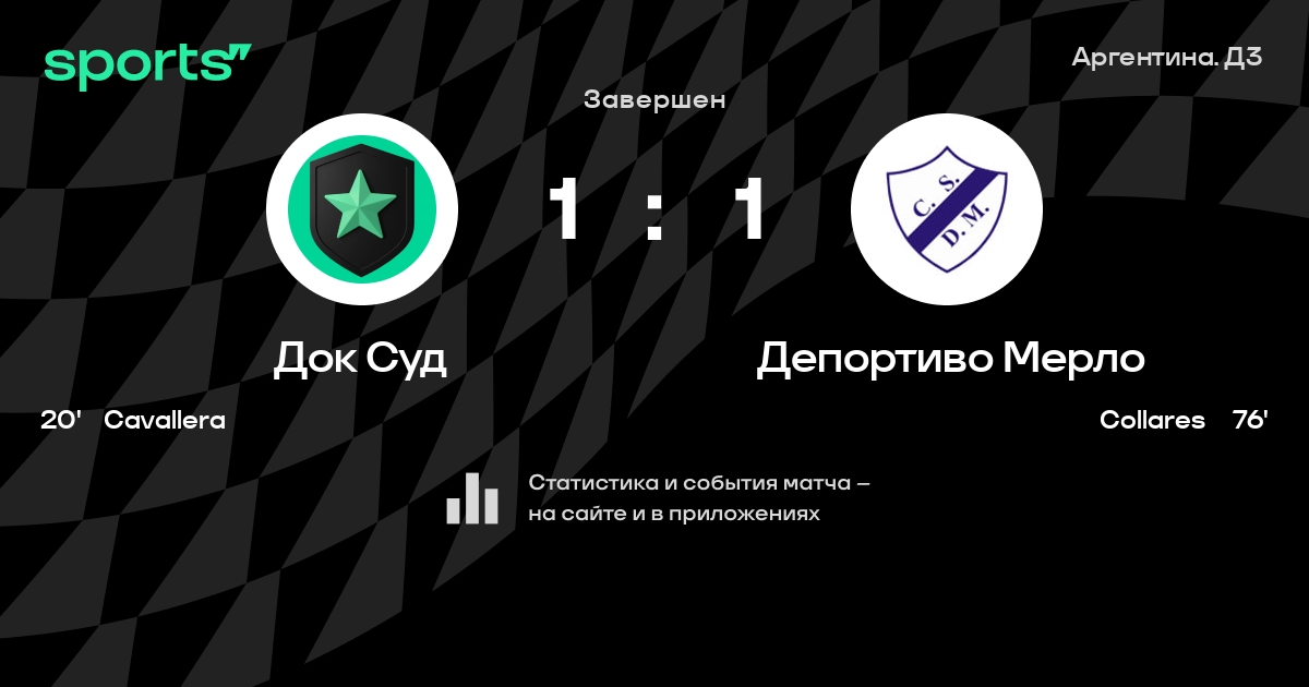 Результат прошлой игры в турнире «Примера B»: Вилья Сан-Карлос – Док Суд 2:2. После 20 туров Док Суд набирает 31 очков и занимает 6 место в турнире. Лучший бомбардир команды – Мауро Молина: он забил 9 в 31 матчах. Док Суд не может выиграть в 5 последних матчах в рамках турнира «Примера B». Док Суд больше всех забивает в турнире – 29 в 20. В последних 5 играх Док Суд забивает 2 голов. В последних 5 играх Док Суд пропускает 7 голов.