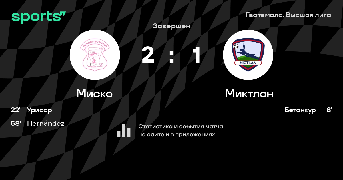 Миско – Миктлан: Миско не проигрывает в 8 из 10 последних матчей против этого соперника