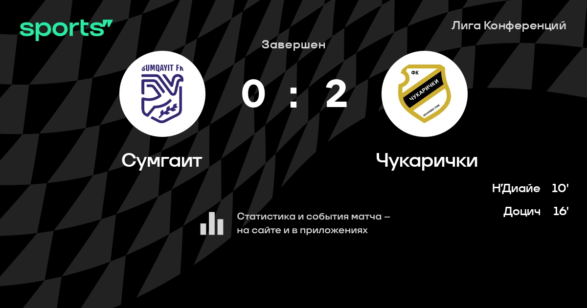 Результат прошлой игры в турнире «Лига Конференций»: Чукарички – Сумгаит 0:0. В последних 5 играх Чукарички забивает 8 голов. В последних 5 играх Чукарички пропускает 4 голов.
