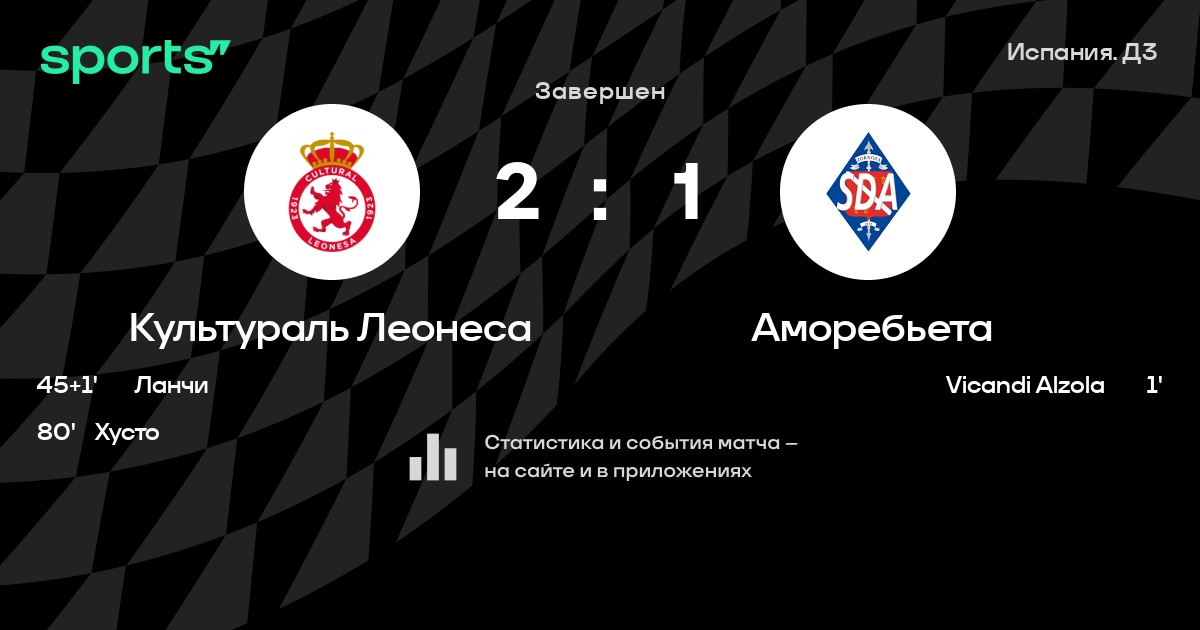 Результат прошлой игры в турнире «Первый дивизион RFEF»: Аморебьета – Арентейро 3:0. После 22 туров Аморебьета набирает 20 очков и занимает 20 место в турнире. Лучший бомбардир команды – Alvaro Marin: он забил 3 в 3 матчах. Аморебьета не проигрывает в 3 последних матчах в рамках турнира «Первый дивизион RFEF». В 3 последних матчах в турнире «Первый дивизион RFEF» Аморебьета обязательно забивает. В последних 5 играх Аморебьета забивает 6 голов. В последних 5 играх Аморебьета пропускает 8 голов.