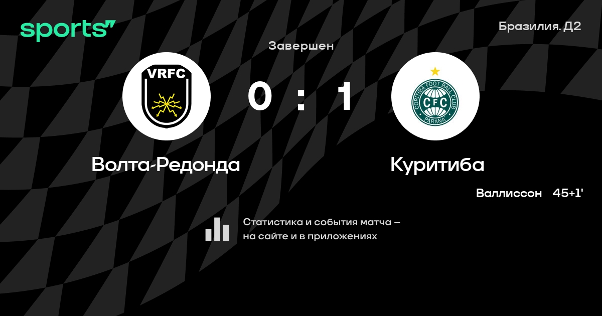 Результат прошлой игры в турнире «Серия B»: Операрио – Волта-Редонда 2:1. После 33 туров Волта-Редонда набирает 34 очков и занимает 17 место в турнире. Лучший бомбардир команды – Матеус Лукас: он забил 4 в 21 матчах. Куритиба имеет в активе больше всех побед в турнире – 16. В последних 5 играх Волта-Редонда забивает 5 голов. В последних 5 играх Волта-Редонда пропускает 7 голов.