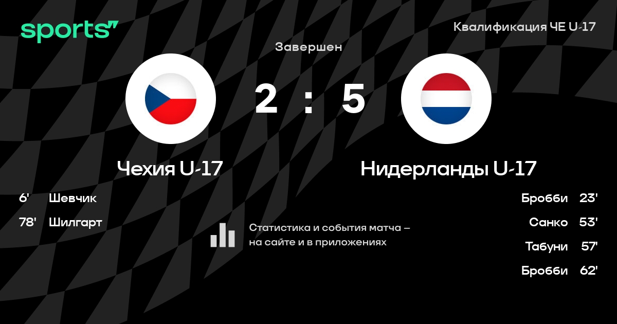 | 2 | Чехия U-17 | 3 | 2 | 0 | 1 | 5 | 5 | 0 | 6 | ||