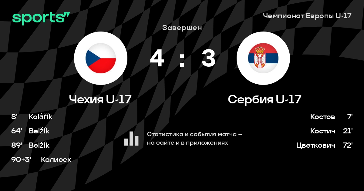 Чехия U-17 побеждает в 3 последних матчах в турнире «Чемпионат Европы U-17»