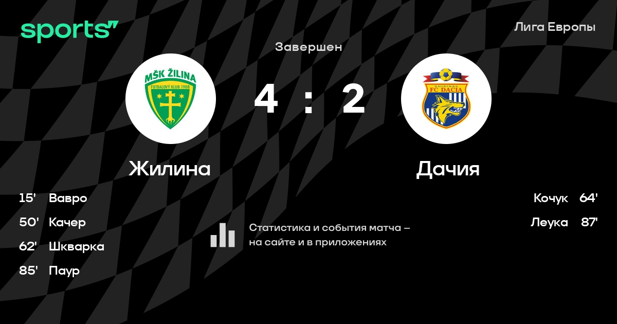 Жилина – Дачия: коэффициенты