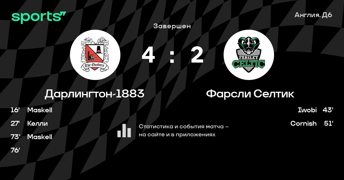 Дарлингтон-1883 – Фарсли Селтик: Дарлингтон-1883 забивает в 7 последних матчах против этого соперника