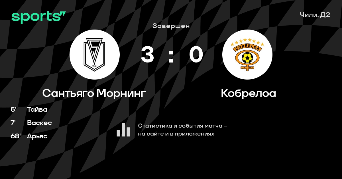 Результат прошлой игры в турнире «Примера B»: Магальянес – Сантьяго Морнинг 0:1. После 27 туров Сантьяго Морнинг набирает 23 очков и занимает 16 место в турнире. Лучший бомбардир команды – K. Campillay: он забил 4 в 28 матчах. Сантьяго Морнинг не проигрывает в 3 последних матчах в рамках турнира «Примера B». В последних 5 играх Сантьяго Морнинг забивает 3 голов. В последних 5 играх Сантьяго Морнинг пропускает 9 голов.