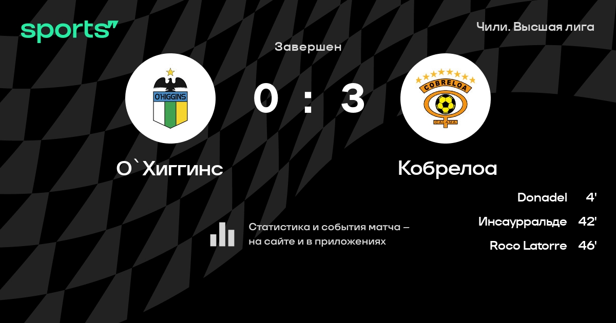 Результат прошлой игры в турнире «Примера»: Кобресаль – О`Хиггинс 3:1. После 29 туров О`Хиггинс набирает 31 очков и занимает 13 место в турнире. Лучший бомбардир команды – O. Bianchi: он забил 5 в 26 матчах. О`Хиггинс проигрывает в 4 последних матчах в рамках турнира «Примера». О`Хиггинс пропускает в 4 последних матчах в турнире «Примера». В последних 5 играх О`Хиггинс забивает 3 голов. В последних 5 играх О`Хиггинс пропускает 10 голов.