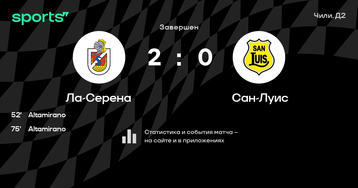 Результат прошлой игры в турнире «Примера B»: Универсидад Консепсьон – Ла-Серена 0:1. После 21 туров Ла-Серена набирает 51 очков и занимает 1 место в турнире. Лучший бомбардир команды – L. Altamirano: он забил 17 в 21 матчах. Ла-Серена побеждает в 7 последних матчах в рамках турнира «Примера B». Ла-Серена имеет в активе больше всех побед в турнире – 16. Ла-Серена имеет лучшую разницу мячей в турнире – 17. В 7 последних матчах в турнире «Примера B» Ла-Серена обязательно забивает. Ла-Серена не пропускает в 4 последних матчах в турнире «Примера B». В последних 5 играх Ла-Серена забивает 6 голов. В последних 5 играх Ла-Серена пропускает 1 голов.