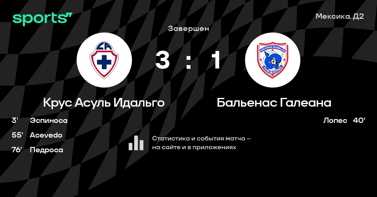 Крус Асуль Идальго – Бальенас Галеана: коэффициенты