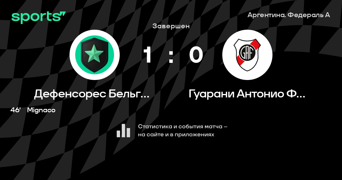 Трансляция Дефенсорес Бельграно ВР - Гуарани Антонио Франко