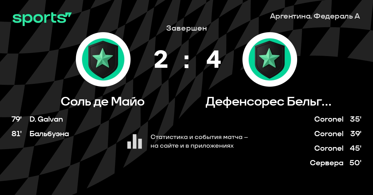 Соль де Майо - Дефенсорес Бельграно ВР: положение в турнире