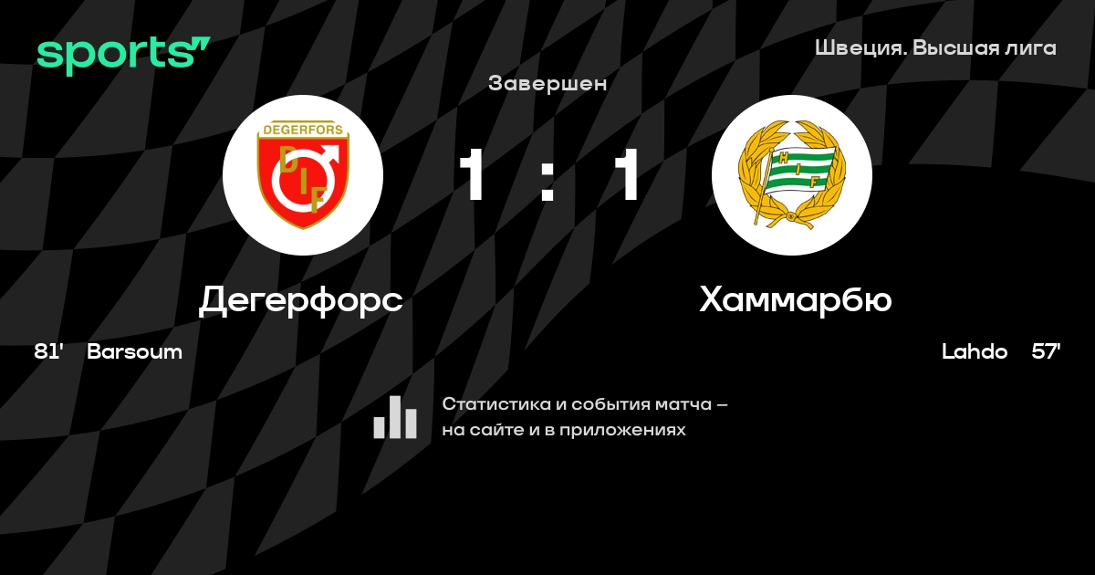 Результат прошлой игры в турнире «Аллсвенскан»: Эстер – Дегерфорс 1:2. После 28 туров Дегерфорс набирает 26 очков и занимает 15 место в турнире. Лучший бомбардир команды – Маркус Рафферти: он забил 6 в 24 матчах. Дегерфорс пропускает в 9 последних матчах в турнире «Аллсвенскан». В последних 5 играх Дегерфорс забивает 8 голов. В последних 5 играх Дегерфорс пропускает 5 голов.
