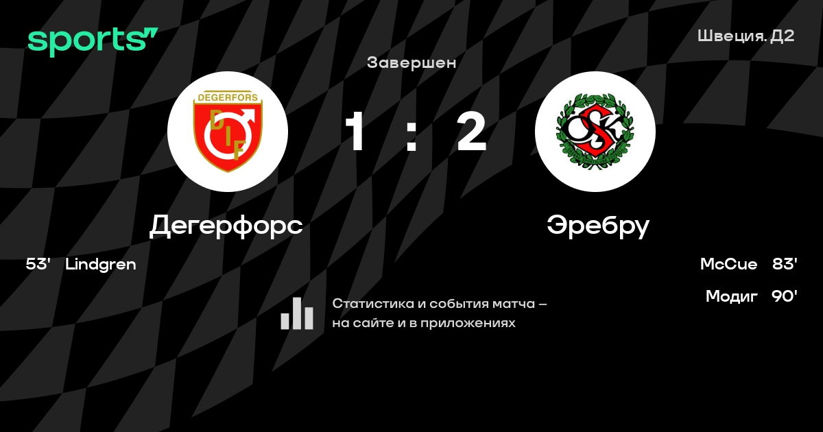 Результат прошлой игры в турнире «Первая лига»: Сундсваль – Дегерфорс 1:2. После 26 туров Дегерфорс набирает 53 очков и занимает 1 место в турнире. Лучший бомбардир команды – Диян Вукоевич: он забил 14 в 25 матчах. Дегерфорс побеждает в 7 последних матчах в рамках турнира «Первая лига». Дегерфорс имеет в активе больше всех побед в турнире – 15. Дегерфорс имеет лучшую разницу мячей в турнире – 24. В 26 последних матчах в турнире «Первая лига» Дегерфорс обязательно забивает. Дегерфорс больше всех забивает в турнире – 47 в 26. В последних 5 играх Дегерфорс забивает 9 голов. В последних 5 играх Дегерфорс пропускает 1 голов.