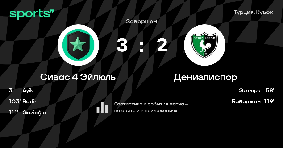 Сивас 4 Эйлюль - Денизлиспор: статистика матча