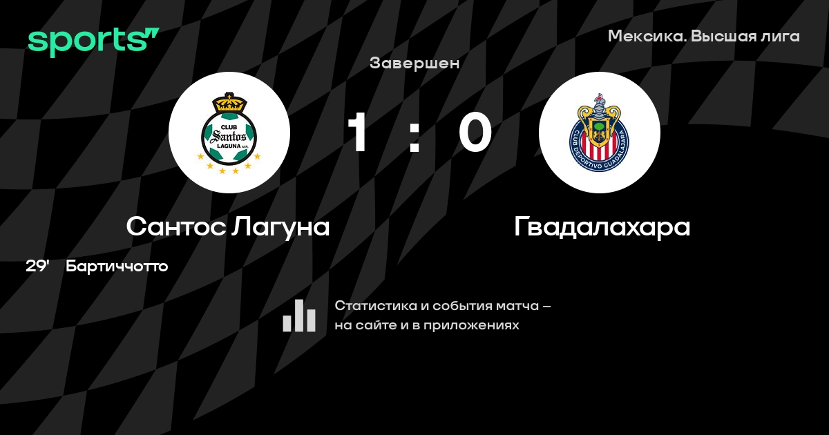 Результат прошлой игры в турнире «Высшая лига»: Пуэбла – Сантос Лагуна 1:0. После 3 туров Сантос Лагуна набирает 3 очков и занимает 11 место в турнире. Лучший бомбардир команды – R. Sordo: он забил 2 в 3 матчах. В последних 5 играх Сантос Лагуна забивает 5 голов. В последних 5 играх Сантос Лагуна пропускает 11 голов.