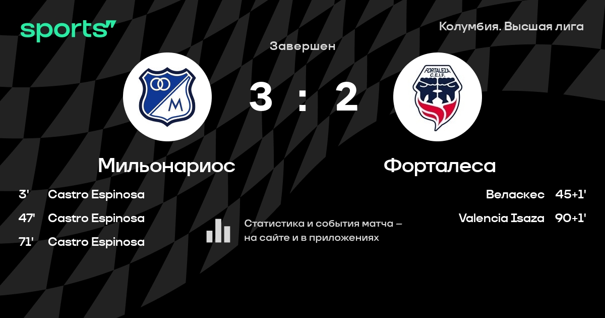 Мильонариос – Форталеса: Мильонариос побеждает в 8 последних очных матчах