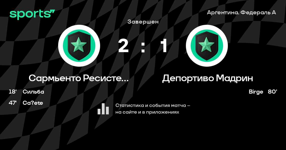 Трансляция Сармьенто Ресистенсия - Депортиво Мадрин