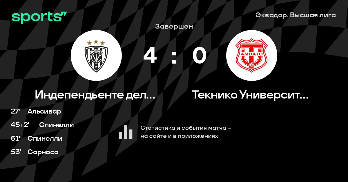Результат прошлой игры в турнире «Серия A»: Эмелек – Индепендьенте дель Валье 0:1. После 26 туров Индепендьенте дель Валье набирает 56 очков и занимает 1 место в турнире. Лучший бомбардир команды – Клаудио Спинелли: он забил 18 в 33 матчах. Индепендьенте дель Валье не проигрывает в 15 последних матчах в рамках турнира «Серия A». Индепендьенте дель Валье имеет в активе больше всех побед в турнире – 16. Индепендьенте дель Валье имеет лучшую разницу мячей в турнире – 26. В последних 5 играх Индепендьенте дель Валье забивает 5 голов. В последних 5 играх Индепендьенте дель Валье пропускает 3 голов.